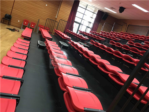 深圳市职业病防治院伸缩看台采用的是ng体育看台中的前置式中空吹塑折叠翻板椅款式,于11月初完工。