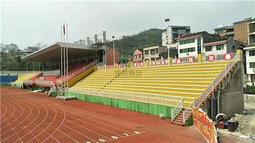 贵州石阡县体育中心看台座椅已安装一年有余,绿蛙同事发现座椅完好如初,气势依然恢宏!