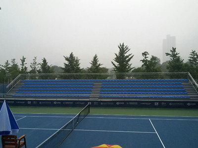 5月18日,2015ITF国际男子网球巡回赛(武汉站)比赛在武汉市全民健身中心网球场举行。该网球场看台由绿蛙公司提供,整体美观,为观众的提供了舒适的观赏平台。