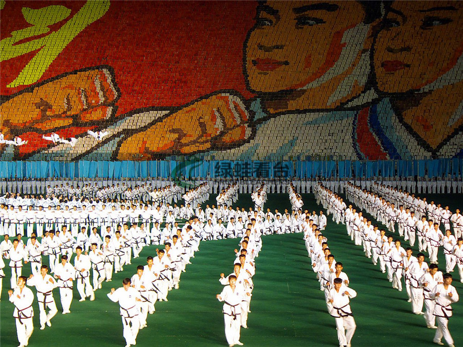 这一类颜色布局的方法就是以某一种颜色为背景,在此基础上,通过颜色的变动形成一些图案。好比矩阵式电视,每一个座椅就是一个显示点。图案想设计越复杂,就要求画面越大矩阵越大,看台座椅的规模也要求越大。简单的图案是字母,相对复杂一点的有中文汉字,最复杂的就是图形。最典型的的代表有朝鲜的平壤体育场。