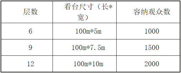 5、看台层数有多种选择,长度可根据现场的尺寸确定,可容纳观众数量大。