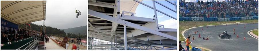 斜梁式可拆卸拼装看台,是一种新型的临时看台系统,整体结构采用标准件、模块化设计,看台的各种部件,如支架,踏板,侧板,护栏,座椅等,皆可随意 搭配组装,可根据场地及观众席位需要进行各种层高、位数的拼装组合。具有结构简单,搭建及拆卸方便,便于运输及储存等特点,可广泛应用于体育场馆,演艺活 动,各种公开活动等临时需要搭建观众看台的场所。
