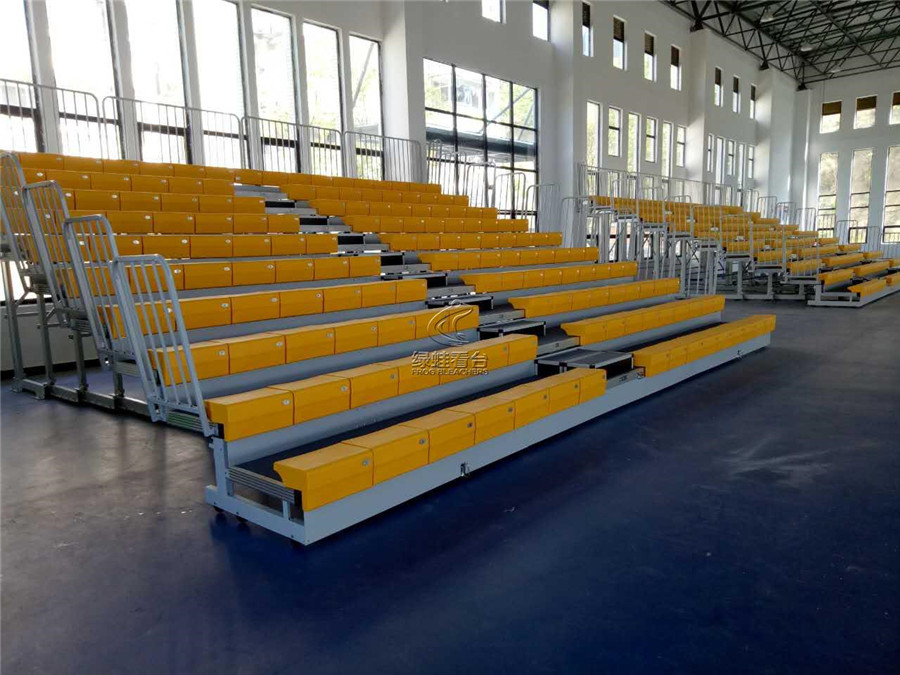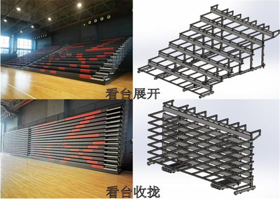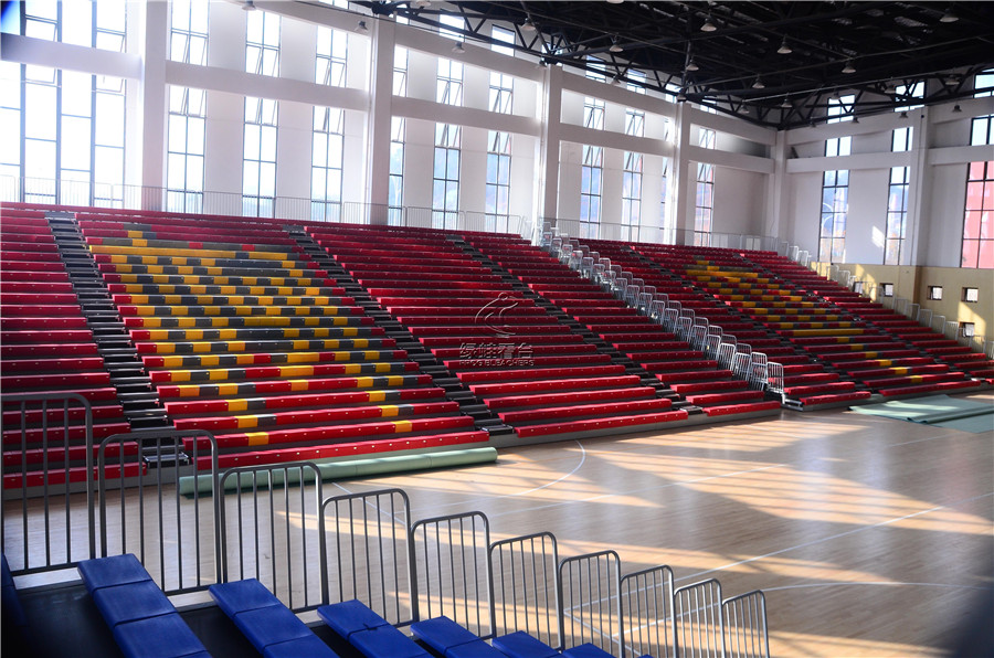 伸缩看台也称为活动看台,活动看台的称呼是相对于固定看台而来,伸缩看台拉伸成台阶形时,看台上的座椅供观众舒适地欣赏节目,收缩成匣子状(似抽屉)时则占用很少的空间,让出场地以安排他用。伸缩看台可充分利用室内的有限面积,满足不同功能情况下的多座位要求。伸缩看台广泛应用于体育馆、会议室、示教室、演播厅、多功能厅等。
