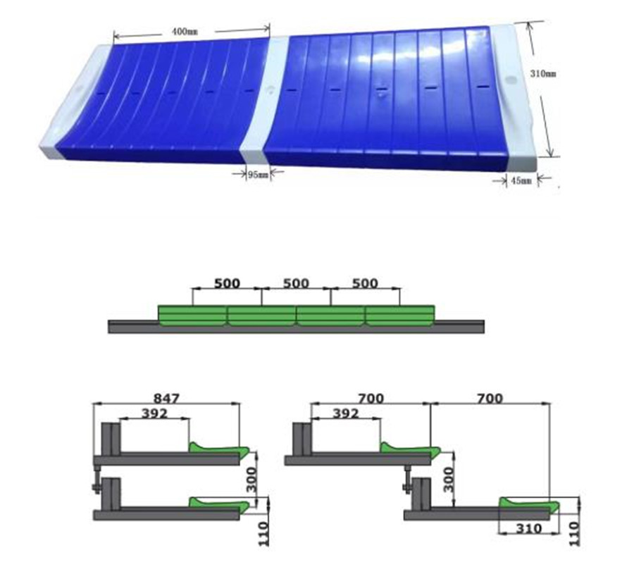 (2)看台整体为垂直支撑结构。看台层宽700mm,尾层宽400mm;首层高330mm,其他层高300mm。(伸缩看台为定制产品,可根据实际场地和客户需求,略微调整尺寸。)