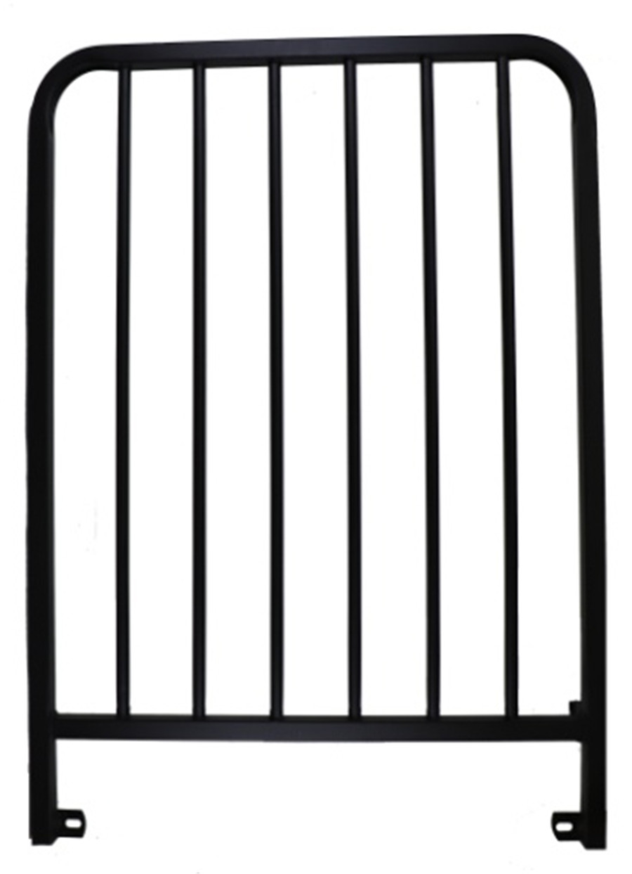 伸缩看台床架侧边无切角部分安装伸缩型安全应护栏在伸缩的过程中护栏无需插拔,护栏的表面采用喷塑处理。看台的两侧每层床架侧边安装有斜护栏,护栏的高度为1100MM,看台的后侧装有垂直护栏,护栏的高度为1100MM,两侧的护栏和后侧的护栏包围起来两者之间的空隙不超100MM,护栏采用钢结构,表面外框采用30mm×30mm家具管弯曲成矩形框,护栏直角部分做圆弧处理。护栏框内嵌垂直部位采用焊接连接,内嵌垂直杆件采用直径19mm家具管,杆件净距也不应大于100mm。侧护栏带有斜角使得每一层的护栏处于不同立面上,在看台伸展收缩时,不同层护栏不会互相碰撞,护栏无需插拔。侧护栏与床架连接是由三个螺栓连接,保证护栏能够实现横向冲击不出现断裂,不出现变形。各护栏的水平静载荷应能达到:加载60Kg/㎡30秒,卸载后无明显永久变形。护栏的垂直静载荷应能达到:加载100Kg/㎡1分钟,卸载后无明显永久变形。